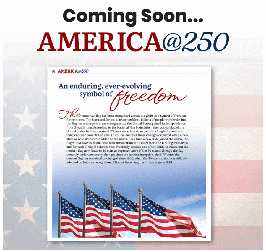 This very special section will celebrate America’s past and present, giving local advertisers an opportunity to share their patriotic pride and connect with the community in celebration of this historic ...