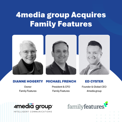 "For more than five decades, Family Features has stayed true to its mission of connecting brands and audiences through stories that matter. Joining the 4media group family ensures that legacy will continue forward into the next generation of visionary storytelling," said Dianne Hogerty, owner of Family Features.