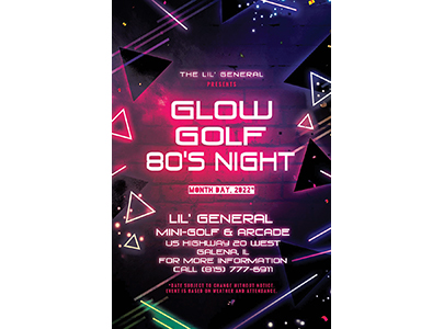 Our local mini golf course wanted to promote its October glow-in-the-dark nights. All the features on the course are lit up by neon strips, making it a cool stop for families as nights in fall come sooner ...