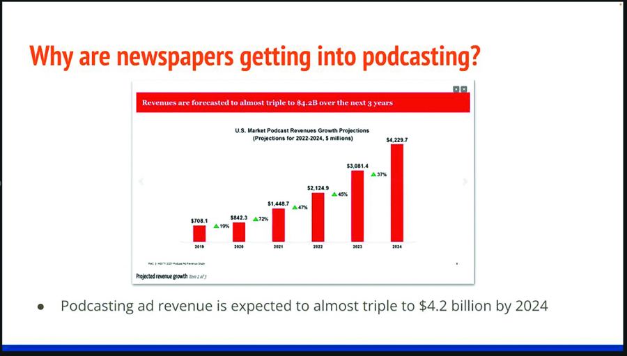 Our-Hometown CEO Matt Larson reported that nearly 23% of the US listens to a podcasts on a weekly basis.