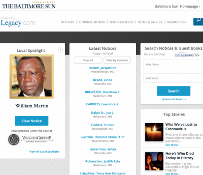Baltimore Sun sees ‘win-win-win’ in Legacy.com obit price test