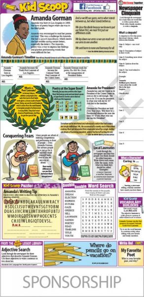 Kid Scoop offers weekly pages that celebrate many different cultures. After publishing weekly for more than 30 years, our archive is huge. Start your Community Culture Series with this Kid Scoop page about Amanda Gordon. Then, add specific Kid Scoop pages that celebrate each of the cultures in your community. Many local businesses within each community culture are available to sponsor pages. Your local corporations and utilities often have non-profit units that can underwrite