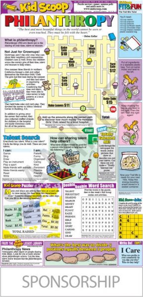 Publishers are gaining new revenue from foundations and the nonprofit units of local corporations. Kid Scoop often hears from publishers who have received this philanthropic revenue to fund our high-quality educational content. Show your local philanthropic leaders this special Kid Scoop page that builds literacy skills plus teaches youngsters about giving.