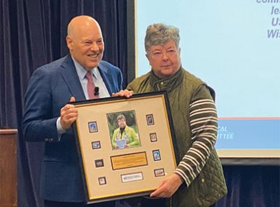 USPS Postmaster General Louis DeJoy honors Tonda Rush, NNA legal counsel, at her last Mailers Technical Advisory Committee (MTAC) meeting in Washington, D.C. Rush is retiring in 2024 after 30+ years as NNA's top public policy and postal person, and in the months ahead will continue behind-the-scenes as a lawyer and consultant to help the boards when needed. NNA Executive Director Lynne Lance succeeds Rush on the MTAC.
