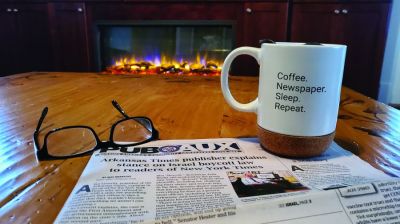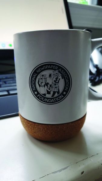 Pictured are front and back images of the National Newspaper Association Foundation’s gift with donations of $50 or more to the Max Heath Postal Institute™, to-go mugs with the saying, “Coffee. Newspaper. Sleep. Repeat.” As of January 1, 2022, everyone who sends in a donation of $50 may receive an NNAF Coffee Mug. Donations of $150 or more may receive a set of four. Donate at https://www.nnafoundation.org/mhpi