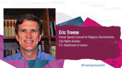 This month, we’re exploring the impact of the 2022 Free Expression Awards honorees, including Eric Treene, former special counsel for religious discrimination in the Civil Rights Division of the U.S. Department of Justice. These are the stories of how the First Amendment advocates we’re honoring have used their voices to uplift others. Watch the Free Expression Awards live at 8 p.m. EDT on Thursday, April 28.