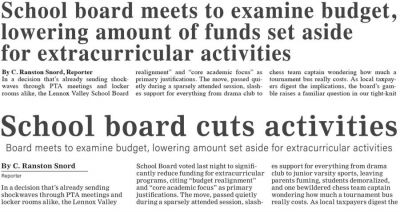 Board meets to examine budget, lowering amount set aside for extracurricular activities