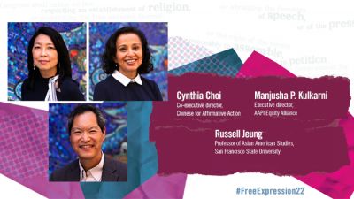 This month, we’re exploring the impact of the 2022 Free Expression Awards honorees, including the founders of Stop AAPI Hate: San Francisco State University Professor Russell Jeung and advocacy group leaders Cynthia Choi of Chinese for Affirmative Action and Manjusha P. Kulkarni of the AAPI Equity Alliance. These are the stories of how the First Amendment advocates we’re honoring have used their voices to uplift others. Watch the Free Expression Awards live at 8 p.m. EDT on Thursday, April 28.