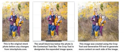 Extending an image: Imagine you are utilizing stock art from a provider for an ad or cover of a special section. To your dismay, the art isn’t quite wide enough to fit the designated area. In the past, this generally meant increasing the image size then cropping the top or bottom to allow it to fit in the space. With Photoshop’s generative AI capabilities, users can now “widen” the image with additional background material. If you need more trees on the left and right, Photoshop can create more trees. If the photo includes a family standing in front of some buildings in New York, Photoshop can generate more buildings on either (or both) sides of the family.