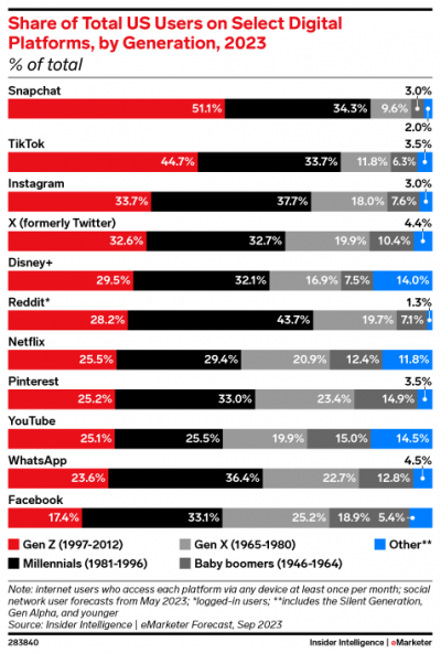 Sure, on a generational level, Facebook may be considered part of an older guard of digital platforms. A recent Insider Intelligence study found it ranked below most of those previously mentioned news-consuming digital platforms for both Gen Z and Millennials.