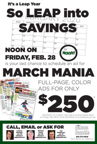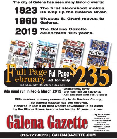 The Galena Gazette celebrated its 175th anniversary in 2009. To bring advertisers in on the festivities and to bolster a typically slow February, were tried something different: Full-Page February.