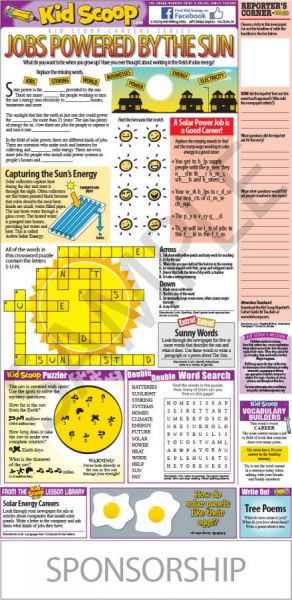 Kid Scoop pages about specific careers appear periodically throughout the year, and careers are linked to the topics of many Kid Scoop pages as well. Sponsors interested in helping children learn about the world of work are everywhere in your community: retailers, contractors (solar!), non-profit units of large corporations, educational institutions, and service organizations.