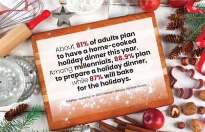 "About 81% of adults plan to have a home-cooked holiday dinner this year. Among millennials, 88.9% plan to prepare a holiday dinner, while 87% will bake for the holidays," Metro credits a statista.com statistic that sourced a Nielsen-Vanillas survey.