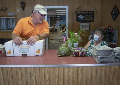 People drop by with news and gossip to share, encouraged by Bluhm’s refrigerator, which is always stocked with cold pop.